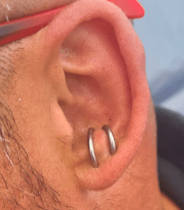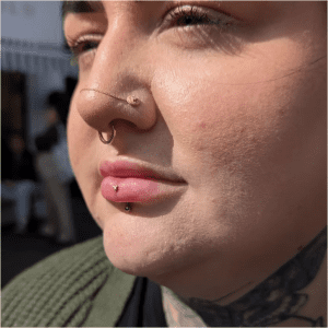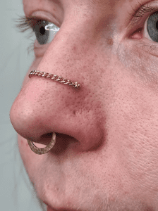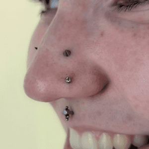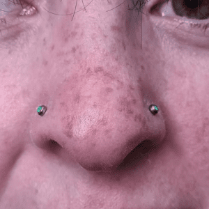 These are a pair of matching nostril piercings that I don’t to fix the originals the customer had done elsewhere that he found to be mismatched. These were done with implant grade titanium freehand