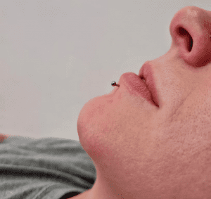 Veryical piercing performed by Jane at Eternal Gold in Glasgow with an implant grade titanium curved barbell