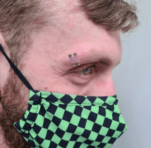 Eyebrow piercing performed by Jane at Eternal Gold in Glasgow with an implant grade titanium curved barbell