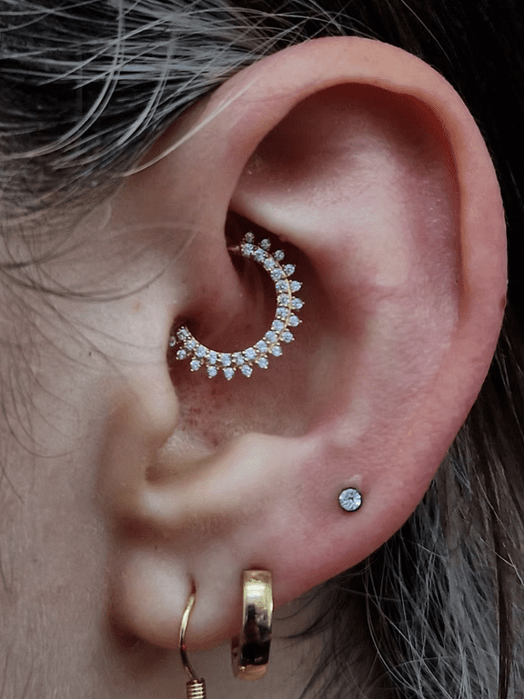 Daith piercing performed by Jane at Eternal Gold in Glasgow with a 14kt yellow gold ring