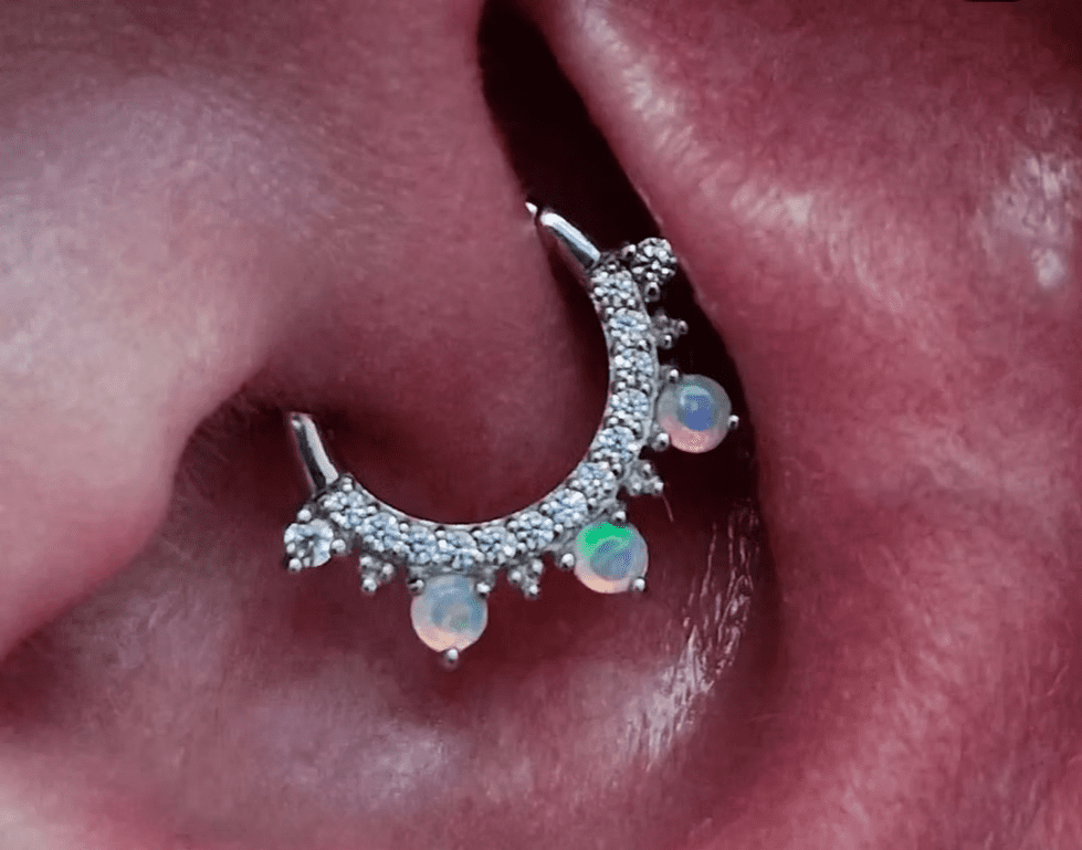 Daith piercing performed by Jane at Eternal Gold in Glasgow with a 14kt white gold ring