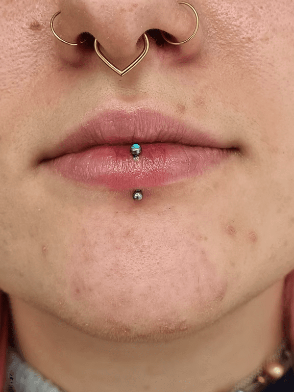 Veryical piercing performed by Jane at Eternal Gold in Glasgow with an implant grade titanium curved barbell