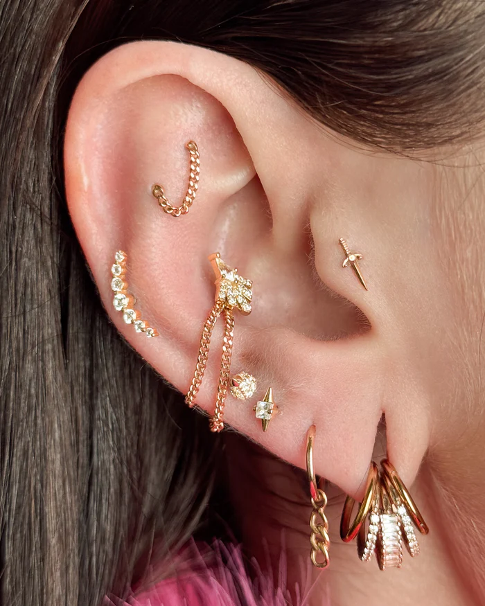 | Gem size | (1) 2mm, (2) 1.7mm, (2) 1.4mm, and (2) 1.1mm round-cut faceted CZs |
