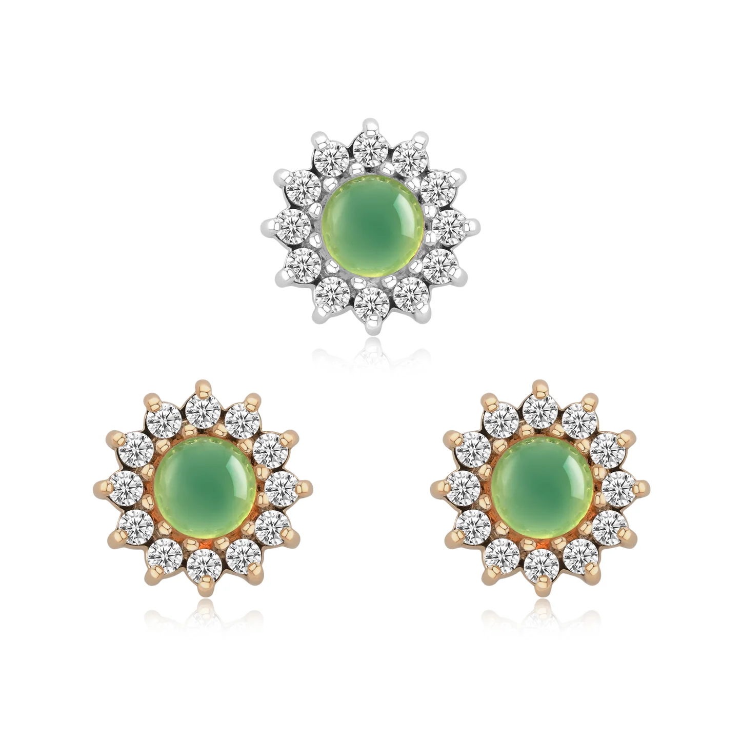 Featuring a genuine chrysoprase or natural white opal and grade 6A clear CZs
