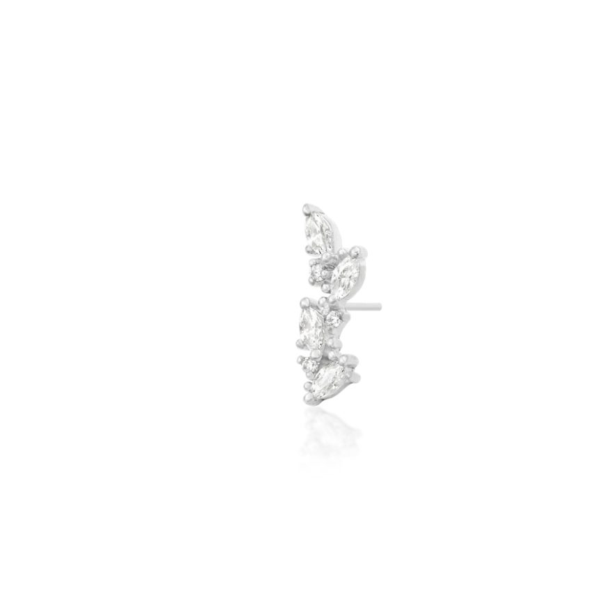 Junipurr’s Andreia Threadless End is a floral inspired vine shape, fashioned from marquise and round cut cubic zirconias.