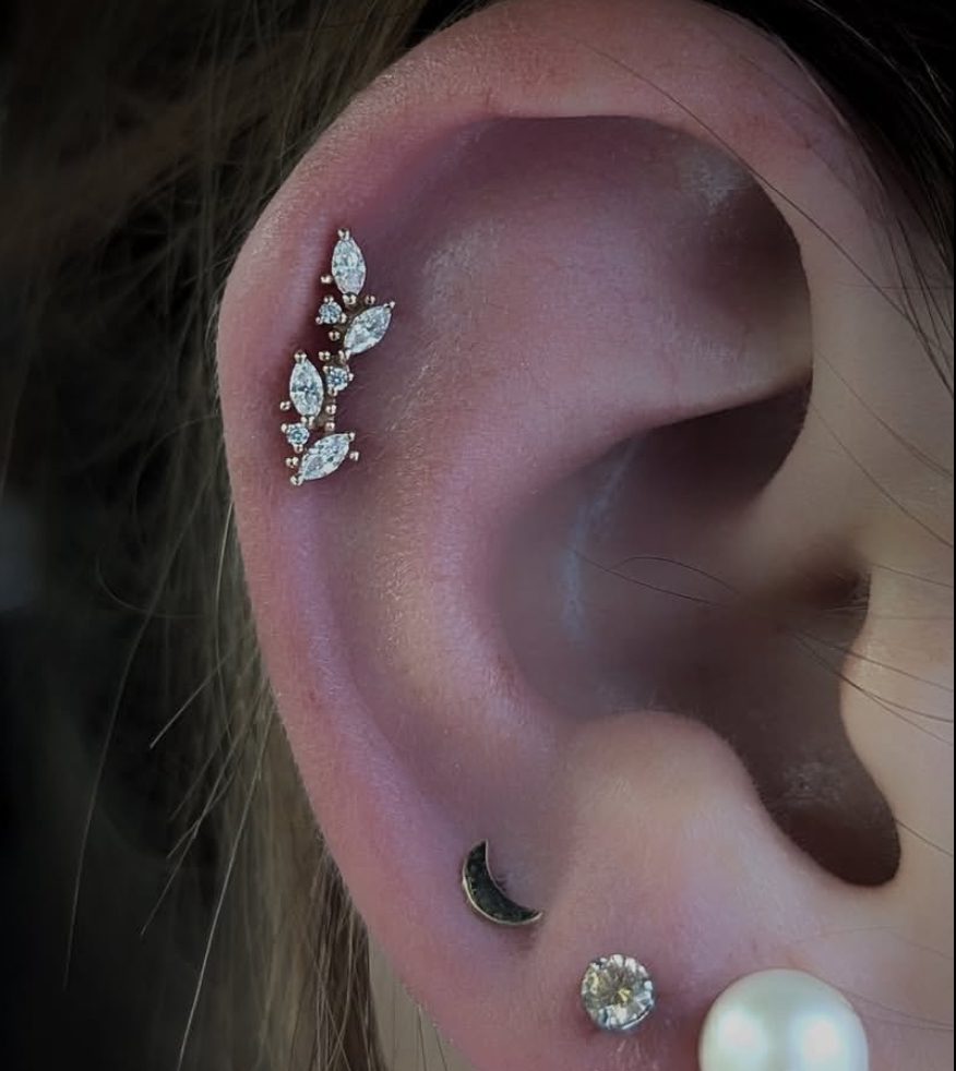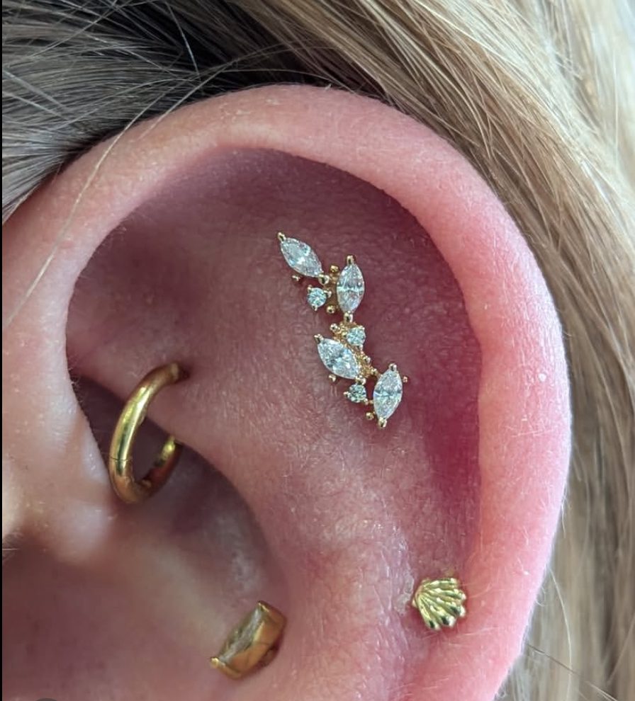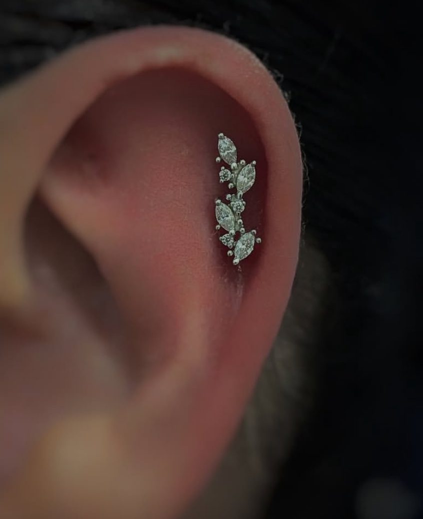 Andreia measures 4mm x 12mm. It is adorned with 3 x 1mm cubic zirconias and 4 x 3×1.5mm marquise cut cubic zirconias.