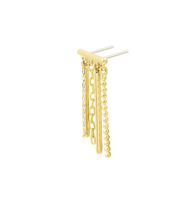 Add a bit of dazzle to your hidden helix (or anywhere that deserves a touch of drama) with Chime – a luxurious statement charm that doesn’t just whisper elegance… it sings. Crafted from solid 14k gold and set with nine twinkling cubic zirconia stones, this piece is pure glamour with a side of cheek.