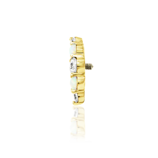 SKU: N/A Category: Jewellery Tags: 14 karat gold, 14kt, 14kt gold, Cubic zirconia (CZ), Gold end, Junipurr, Rose gold, Synthetic Opal, Threaded, Threadless, White gold, White Opal, Yellow gold Brand: Junipurr Jewelry