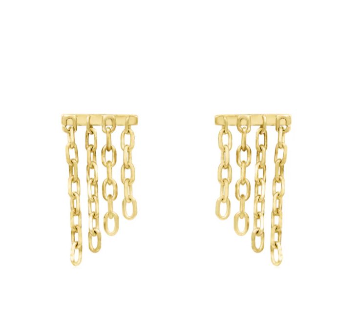 Dripping chains for days, Imogen is picture perfect simplicity. A waterfall of fine gold chain mounted on an invisible setting for a seamless fit.  It measures 5.3mm x 10.7mm and is available in Yellow, Rose and White gold.