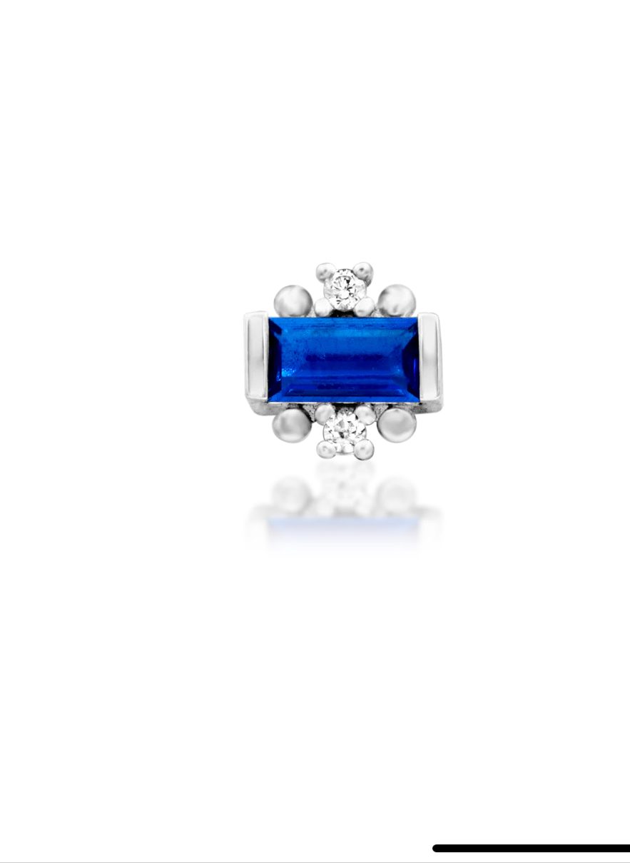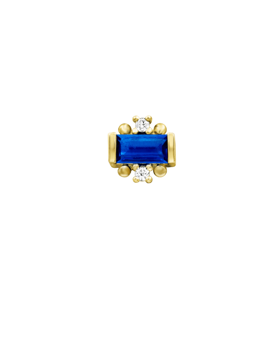 Chic and captivating, Tina brings a refined splash of color to your curated collection. A deep blue center stone is framed by brilliant clear CZs, all set in 14k Yellow, White, or Rose Gold. At just 4.8mm x 4.8mm, she offers subtle elegance with a sophisticated edge.