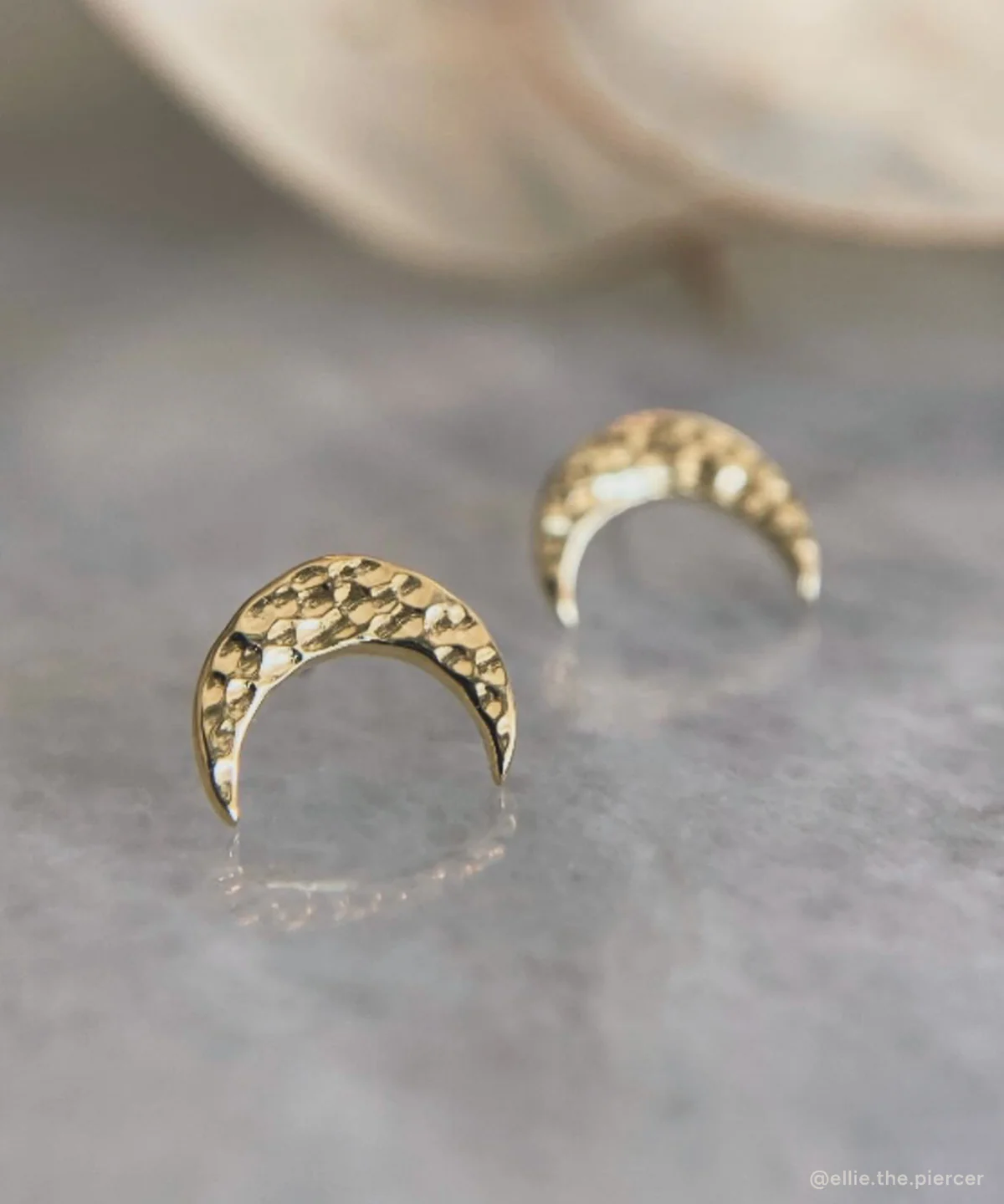 Moon Ends are available in 18K Gold (Yellow, Rose, or White) and are hand-polished to a mirror finish. For 18K Gold options, we provide unique finishes, including hammered and sandblasted, to cater to various preferences and styles.