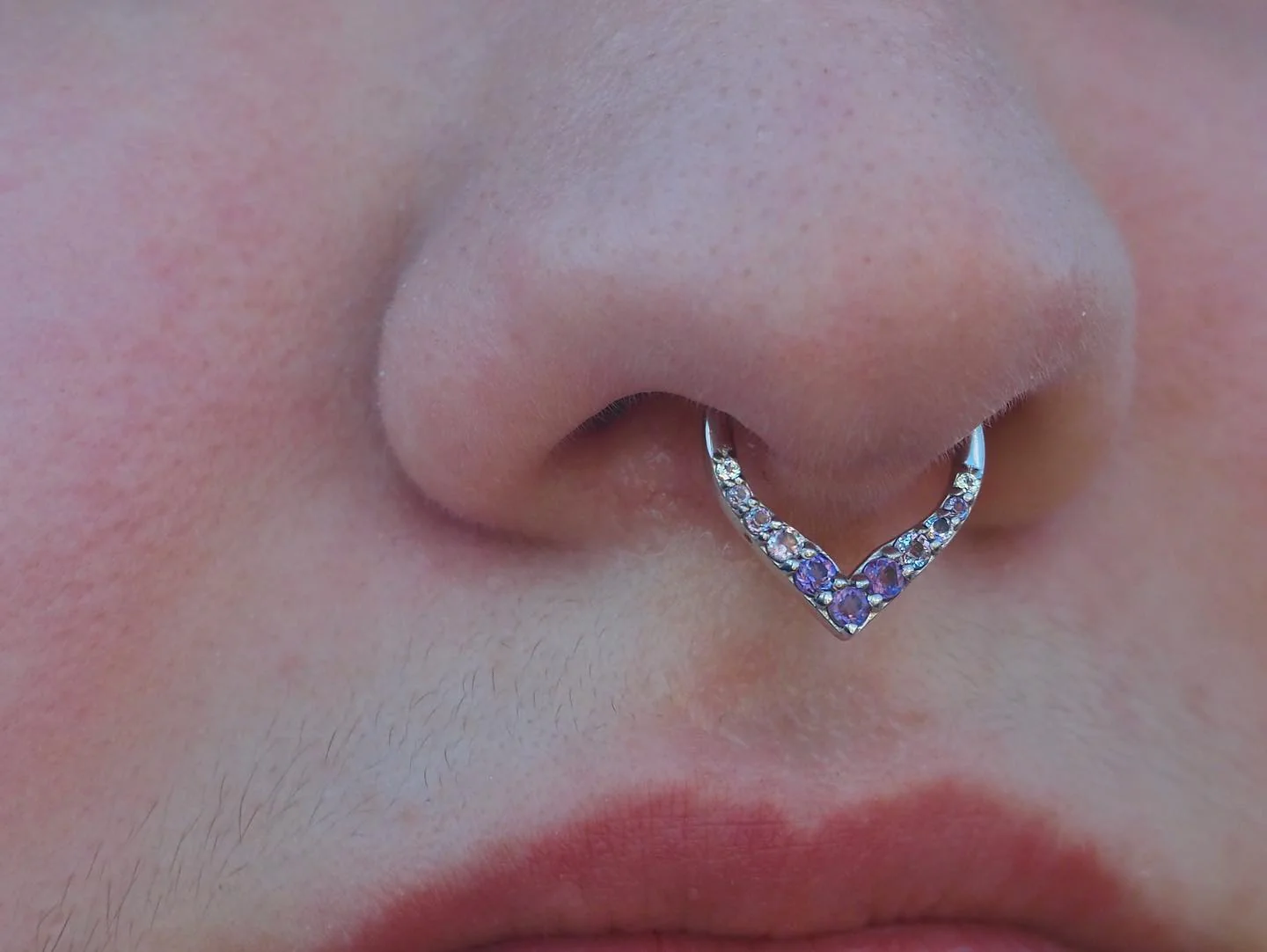 5/16" size: (3) 1.7mm, (2) 1.5mm, (2) 1.1mm, (4) 1mm round-cut faceted Amethyst, 3/8" size: (3) 1.8mm, (2) 1.6mm, (2) 1.2mm, (2) 1.1mm, (2) 1mm round-cut faceted Amethyst