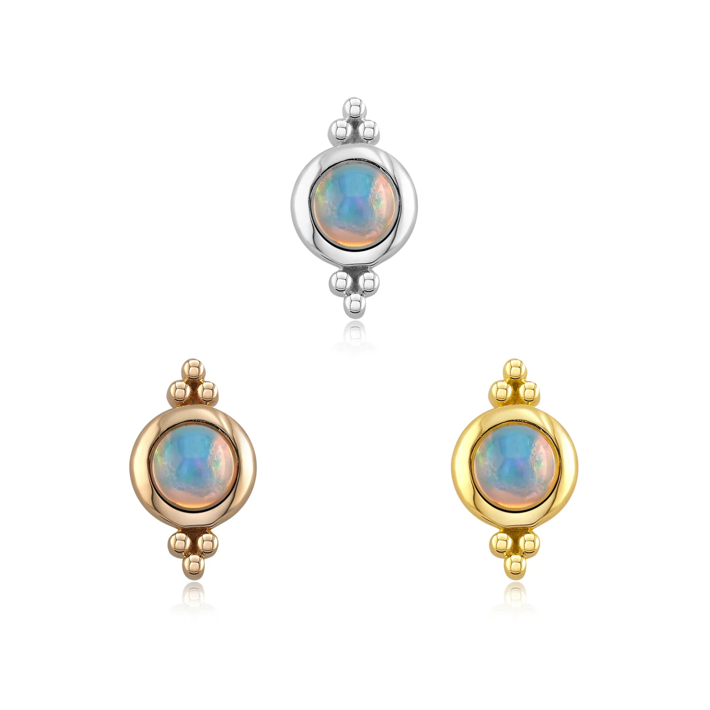 Fall in love with the Sweetheart Threadless End, featuring a genuine white opal or genuine chrysoprase at its center. This romantic piece shines with iridescent beauty, adding a touch of magic to any look.